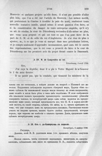 Донесения французского полномочного министра при русском дворе, Кампредона, и агента Маньяна, за 1725 и 1727 гг. От г. де-Кампредона к королю. Петербург, 6 апреля 1726 г.