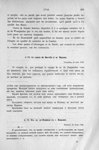 Донесения французского полномочного министра при русском дворе, Кампредона, и агента Маньяна, за 1725 и 1727 гг. От гр. де-Морвиля к г. Маньяну. Версаль, 20 июня 1726 г.