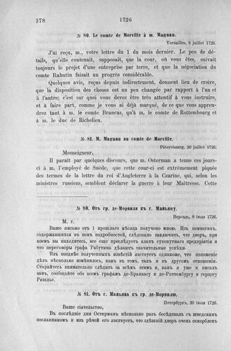 Донесения французского полномочного министра при русском дворе, Кампредона, и агента Маньяна, за 1725 и 1727 гг. Отъ г. Маньяна к гр. де-Морвилю. Петербург, 20 июля 1726 г.