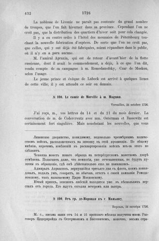 Донесения французского полномочного министра при русском дворе, Кампредона, и агента Маньяна, за 1725 и 1727 гг. От гр. де-Морвиля к г. Маньяну. Версаль, 24 октября 1726 г.