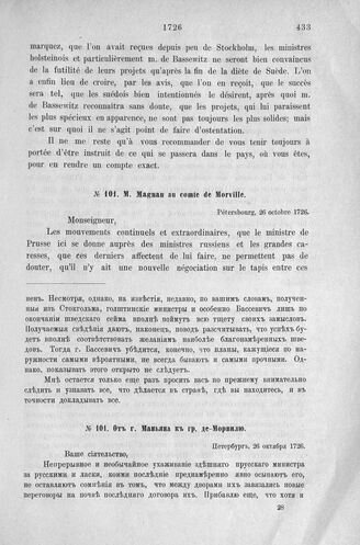 Донесения французского полномочного министра при русском дворе, Кампредона, и агента Маньяна, за 1725 и 1727 гг. От г. Маньяна к гр. де-Морвилю. Петербург, 26 октября 1726 г.