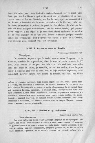 Донесения французского полномочного министра при русском дворе, Кампредона, и агента Маньяна, за 1725 и 1727 гг. От г. Маньяна к гр. де-Морвилю. Петербург, 2 ноября 1726 г.