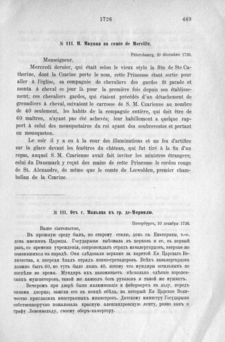 Донесения французского полномочного министра при русском дворе, Кампредона, и агента Маньяна, за 1725 и 1727 гг. От г. Маньяна к гр. де-Морвилю. Петербург, 10 декабря 1726 г.