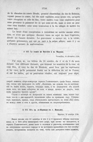 Донесения французского полномочного министра при русском дворе, Кампредона, и агента Маньяна, за 1725 и 1727 гг. От гр. де-Морвиля к г. Маньяну. Версаль, 16 декабря 1726 г.
