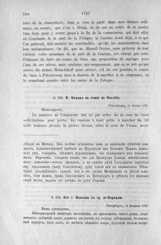 Донесения французского полномочного министра при русском дворе, Кампредона, и агента Маньяна, за 1725 и 1727 гг. От г. Маньяна к гр. де-Морвилю. Петербург, 11 февраля 1727 г.