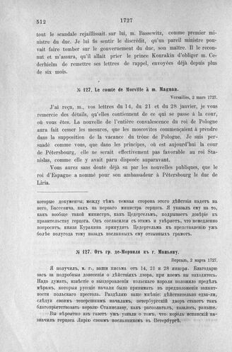 Донесения французского полномочного министра при русском дворе, Кампредона, и агента Маньяна, за 1725 и 1727 гг. От гр. де-Морвиля к г. Маньяну. Версаль, 2 марта 1727 г.