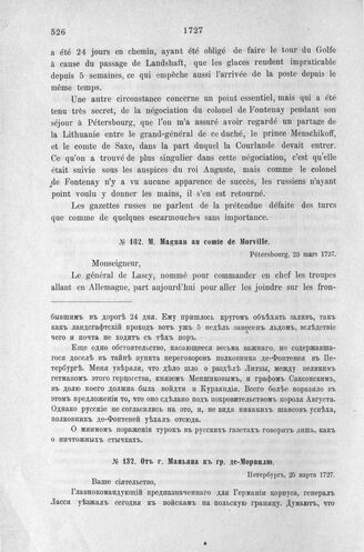 Донесения французского полномочного министра при русском дворе, Кампредона, и агента Маньяна, за 1725 и 1727 гг. От г. Маньяна к гр. де-Морвилю. Петербург, 25 марта 1727 г.