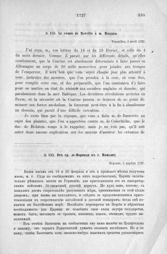 Донесения французского полномочного министра при русском дворе, Кампредона, и агента Маньяна, за 1725 и 1727 гг. От гр. де-Морвиля к г. Маньяну. Версаль, 3 апреля 1727 г.