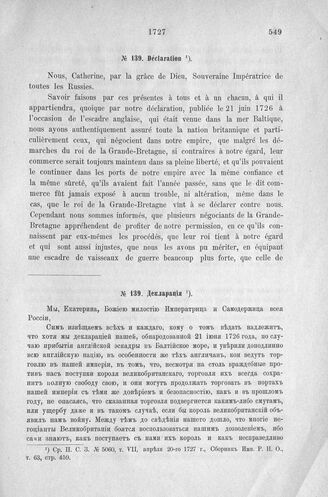 Донесения французского полномочного министра при русском дворе, Кампредона, и агента Маньяна, за 1725 и 1727 гг. Декларация