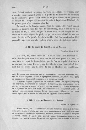 Донесения французского полномочного министра при русском дворе, Кампредона, и агента Маньяна, за 1725 и 1727 гг. От гр. де-Морвиля к г. Маньяну. Версаль, 28 апреля 1727 г.