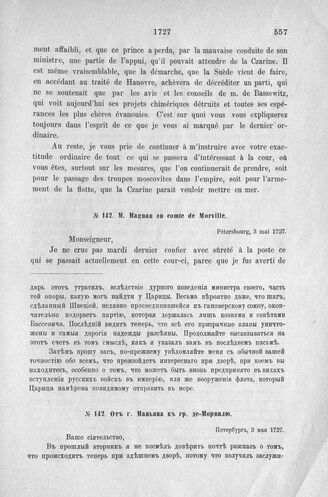 Донесения французского полномочного министра при русском дворе, Кампредона, и агента Маньяна, за 1725 и 1727 гг. От г. Маньяна к гр. де-Морвилю. Петербург, 3 мая 1727 г.