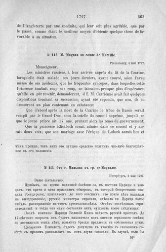 Донесения французского полномочного министра при русском дворе, Кампредона, и агента Маньяна, за 1725 и 1727 гг. От г. Маньяна к гр. де-Морвилю. Петербург, 6 мая 1727 г.