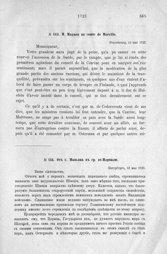 Донесения французского полномочного министра при русском дворе, Кампредона, и агента Маньяна, за 1725 и 1727 гг. От г. Маньяна к гр. де-Морвилю. Петербург, 13 мая 1727 г.