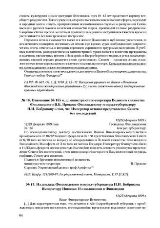 Из доклада Финляндского генерал-губернатора Н.И. Бобрикова Императору Николаю II о положении в Финляндии. 13(25) февраля 1899 г.