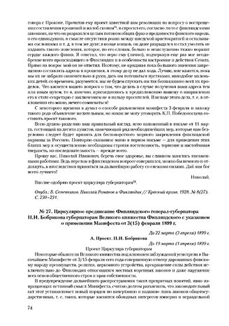 Главная Россия и независимость Финляндии. 1899-1920 Россия и независимость Финляндии, 1899-1920 гг. Т. 1. От автономии ... Циркулярное предписание Финляндского генерал-губернатора Н.И. Бобри...