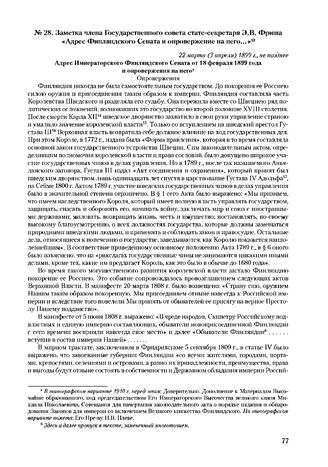Заметка члена Государственного совета статс-секретаря Э.В. Фриша «Адрес Финляндского Сената и опровержение на него...». 22 марта (3 апреля) 1899 г., не позднее // РГИА. Ф. 1544. Оп. 1. Д. 25. Л. 320 об.-342 (отдельное вложение). Рукопись. ГА РФ. Ф. 601. Оп. 1. Д. 2336. Рукопись. РНБ. Шифр: 135/300-77. Государственный совет. Материалы. Т. 77 [2:1].