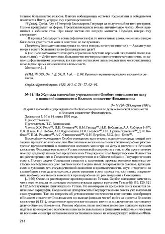Из Журнала Высочайше учрежденного Особого совещания по делу о воинской повинности в Великом княжестве Финляндском. 7-14 (20-27) марта 1901 г. // РГИА. Ф. 1149. Оп. 13. 1901. Д. 34. Л. 949-949 об., 969-972. Типографский текст. PHБ. Шифр: 135/286-291. Государственный совет. Материалы. Т. 291 [7].