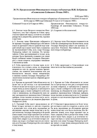 Предположения Финляндского генерал-губернатора Н.И. Бобрикова об изменении Сеймового Устава 1869 г. 3(10) мая 1902 г.