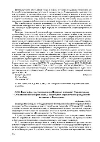Высочайшее постановление по Великому княжеству Финляндскому «Об изменении некоторых правил, касающихся службы чинов гражданского ведомства в Финляндии». 18(31) июля 1902 г.
