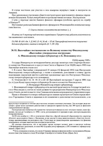 Высочайшее постановление по Великому княжеству Финляндскому Высочайше утвержденные инструкции: А. Финляндскому генерал-губернатору и Б. Помощнику его. 13(26) марта 1903 г.