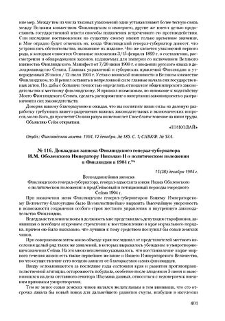 Докладная записка Финляндского генерал-губернатора И.М. Оболенского Императору Николаю II о политическом положении в Финляндии в 1904 г. 15(28) декабря 1904 г.