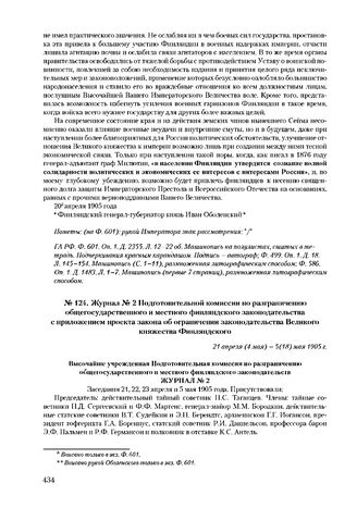 Журнал № 2 Подготовительной комиссии по разграничению общегосударственного и местного финляндского законодательства с приложением проекта закона об ограничении законодательства Великого княжества Финляндского. 21 апреля (4 мая) - 5(18) мая 1905 г.