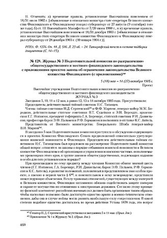 Журнал № 3 Подготовительной комиссии по разграничению общегосударственного и местного финляндского законодательства с приложениями проектов закона об ограничении законодательства Великого княжества Финляндского (с приложениями). 5 (18) мая-14 (27) октября 1905 г. // РГИА. Ф. 1544. Оп. 1. Д. 15. Л. 55-90. Типографский текст. РНБ. Шифр: 135/300-77. Государственный совет. Материалы. Т. 77 [3:IV].