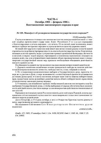 Манифест об усовершенствовании государственного порядка. 17(30) октября 1905 г.