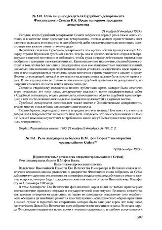 Речь вице-председателя Судебного департамента Финляндского Сената Р.А. Вреде на первом заседании департамента. 21 ноября (4 декабря) 1905 г.