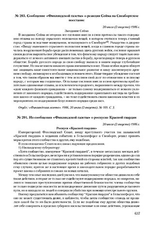 Из сообщения «Финляндской газеты» о роспуске Красной гвардии. 20 июля (2 августа) 1906 г. // Опубл.: Финляндская газета. 1906, 25 июля (7 августа). № 111. С. 1.
