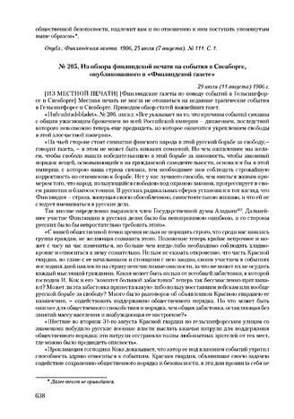 Из обзора финляндской печати на события в Свеаборге, опубликованного в «Финляндской газете». 29 июля (11 августа) 1906 г.