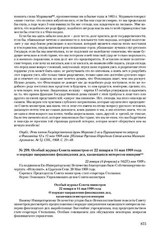 Особый журнал Совета министров от 22 января и 14 мая 1908 года о порядке направления финляндских дел, касающихся интересов империи. 22 января (4 февраля) и 14(27) мая 1908 г.