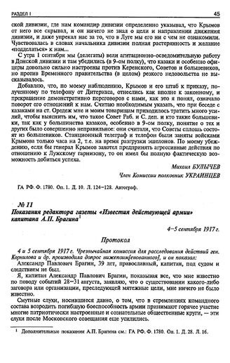 Показания редактора газеты «Известия действующей армии» капитана А.П. Брагина. 4—5 сентября 1917 г.