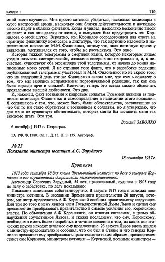 Показание министра юстиции А. С. Зарудного. 18 сентября 1917 г.