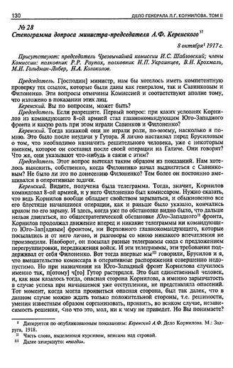 Стенограмма допроса министра-председателя А.Ф. Керенского. 8 октября 1917 г.