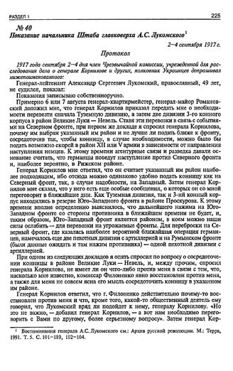 Показание начальника Штаба главковерха А.С. Лукомского. 2—4 сентября 1917 г.