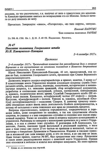 Показание полковника Генерального штаба Ю.Н. Плющевского-Плющика. 2-4 сентября 1917 г.