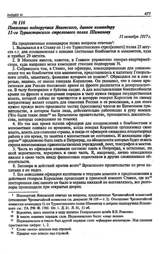 Показания офицеров штабов о командировании их в Ставку для изучения минометов и бомбометов. Показание подпоручика Янковского, данное командиру 11-го Туркестанского стрелкового полка Шаманову. 31 октября 1917 г.