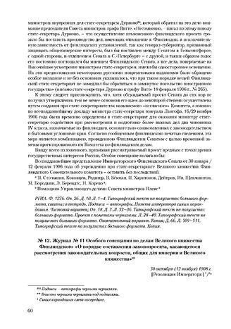 Журнал № 11 Особого совещания по делам Великого княжества Финляндского «О порядке составления законопроекта, касающегося рассмотрения законодательных вопросов, общих для империи и Великого княжества». 30 октября (12 ноября) 1908 г.