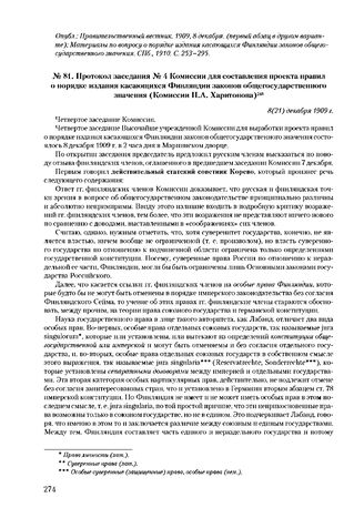 Протокол заседания № 4 Комиссии для составления проекта правил о порядке издания касающихся Финляндии законов общегосударственного значения (Комиссии П.А. Харитонова). 8(21) декабря 1909 г. // РГИА. Ф. 1276. Оп. 18. Д. 608. Л. 553-559. Машинопись; Л. 561-568. Машинопись. PHБ. Шифр: 135/300-80. Государственный совет. Материалы. Т. 80 [3]. С. 178-192; Шифр: 30-31/5-32. Совет министров. [Законопроекты, внесенные Советом министров...] [8]. Л. 292 об. - 299 об. Опубл.: Материалы по вопросу о порядке издания касающихся Финляндии законов общегосударственного значения. СПб., 1910. С. 296-310.