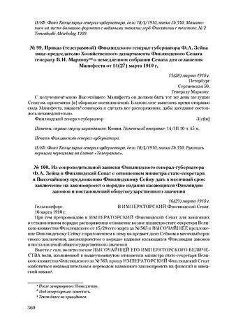Из сопроводительной записки Финляндского генерал-губернатора Ф.А. Зейна в Финляндский Сенат с отношением министра статс-секретаря и Высочайшему предложению Финляндскому Сейму дать в месячный срок заключение на законопроект о порядке издания касающ...
