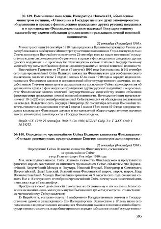 Высочайшее повеление Императора Николая II, объявленное министром юстиции, «О внесении в Государственную думу законопроектов об уравнении в правах с финляндскими гражданами других русских подданных и о производстве Финляндскою казною платежей Госу...