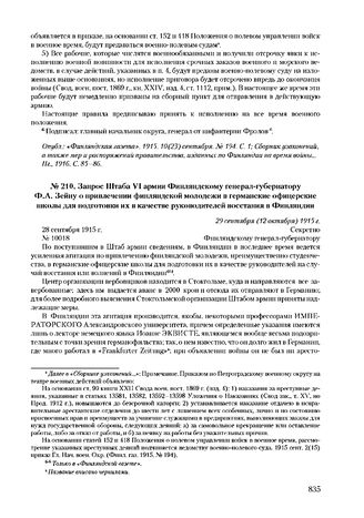 Запрос штаба VI армии Финляндскому генерал-губернатору Ф.А. Зейну о привлечении финляндской молодежи в германские офицерские школы для подготовки их в качестве руководителей восстания в Финляндии. 29 сентября (12 октября) 1915 г.