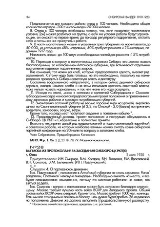 Выписка из протокола № 56 заседания Сиббюро ЦК РКП(б). г. Омск. 2 июля 1920 г. // ГАНО. Ф.п. 1. Оп. 3. Д. 3. Л. 2. Машинописный подлинник.