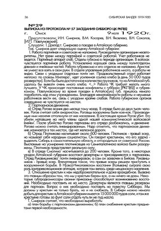 Выписка из протокола № 57 заседания Сиббюро ЦК РКП(б). г. Омск. 9 июля 1920 г. // ГАНО. Ф.п. 1. Оп. 3. Д. 3. Лл. 4, 5. Машинописный подлинник.