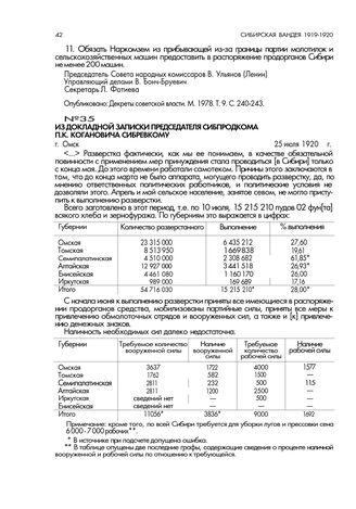 Из докладной записки председателя Сибпродкома П.К. Когановича Сибревкому. г. Омск. 25 июля 1920 г. // РГАЭ. Ф. 1943. Оп. 3. Д. 711. Л. 34. Машинописная копия.