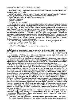 Обращение Сибревкома «Всему крестьянскому населению Сибири». [г. Омск]. 9 октября 1920 г. // ГАНО. Ф.р. 1. Оп. 1. Д. 78. Лл. 306, 307. Машинописный подлинник.