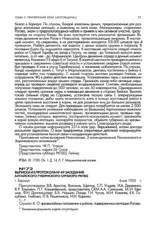 Выписка из протокола № 49 заседания Алтайского губернского оргбюро РКП(б). г. Барнаул. 6 мая 1920 г. // ЦХАФАК. Ф.п. 2. Оп. 1. Д. 1. Л. 100. Машинописный подлинник.