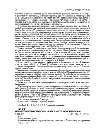 Из разведывательной сводки штаба 26-й стрелковой дивизии. г. Барнаул. 7 мая 1920 г., 11 час // РГВА. Ф. 1317. Оп. 2. Д. 938. Л. 13. Машинописный подлинник.