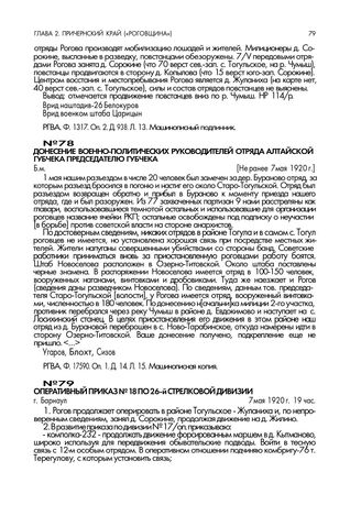 Оперативный приказ № 18 по 26-й стрелковой дивизии. г. Барнаул. 7 мая 1920 г., 19 час // РГВА. Ф. 1317. Оп. 2. Д. 152. Л. 9. Машинописная копия.